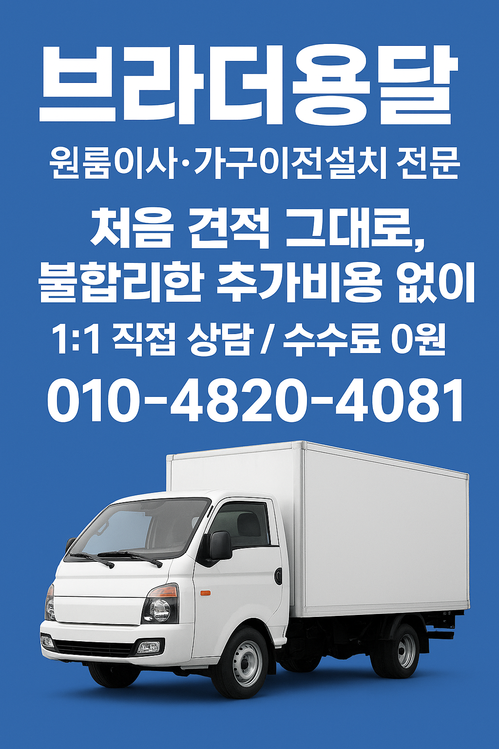 브라더는 절대로 불합리한 추가비용을 요구하지 않습니다. 단골고객 재거래많은 용달